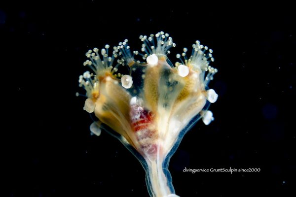 クラゲの体に対しては大きなヨコエビが消化され始めています